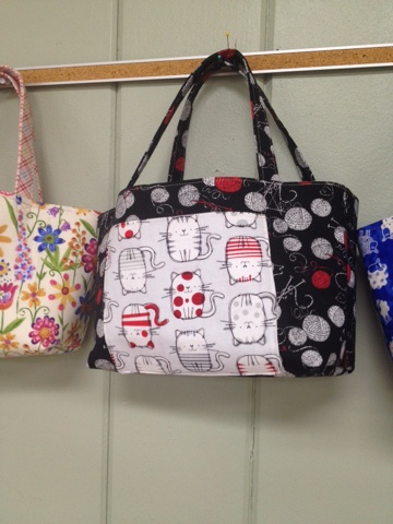 At our "no frills' guild retreat last weekend - we had one FRILL! Typically at our Autumn retreat we have no planned activities. Everyone works on their own projects, we laugh and eat and sew - a little bit of heaven. This year, Terri shared a fun-fast-easy tote bag she found on Pinterest.
